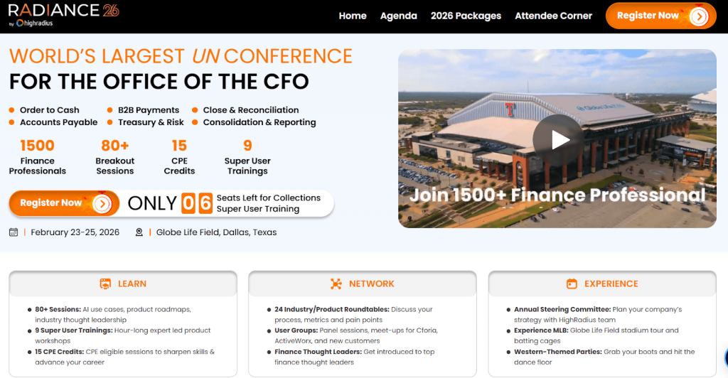 | Radiance 2026 | February 23 to 25, 2026 | Dallas, TX, USA | Forecasting discipline, planning, and CFO-level performance management |
