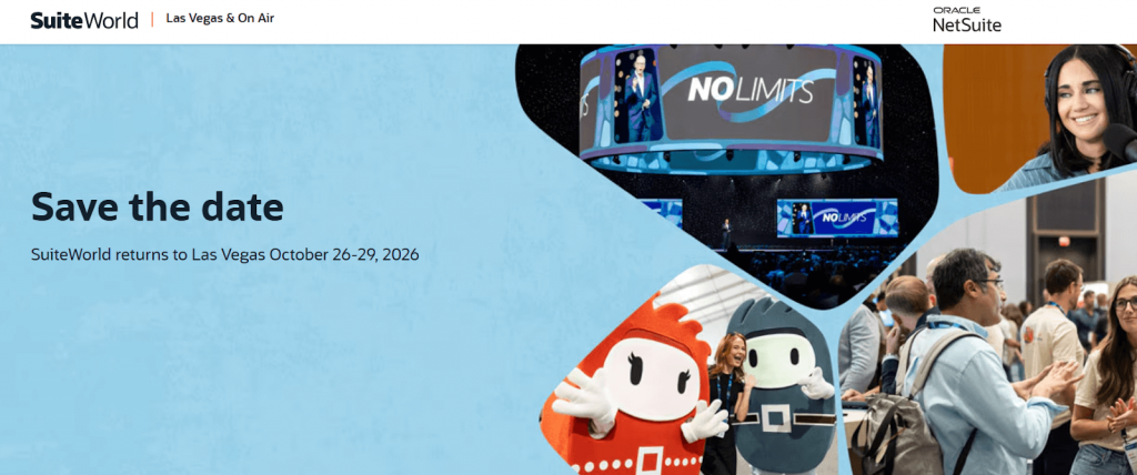 | SuiteWorld | October 26 to 29, 2026 | Las Vegas, NV, USA | NetSuite-driven finance operations, ERP configuration, and reporting control |