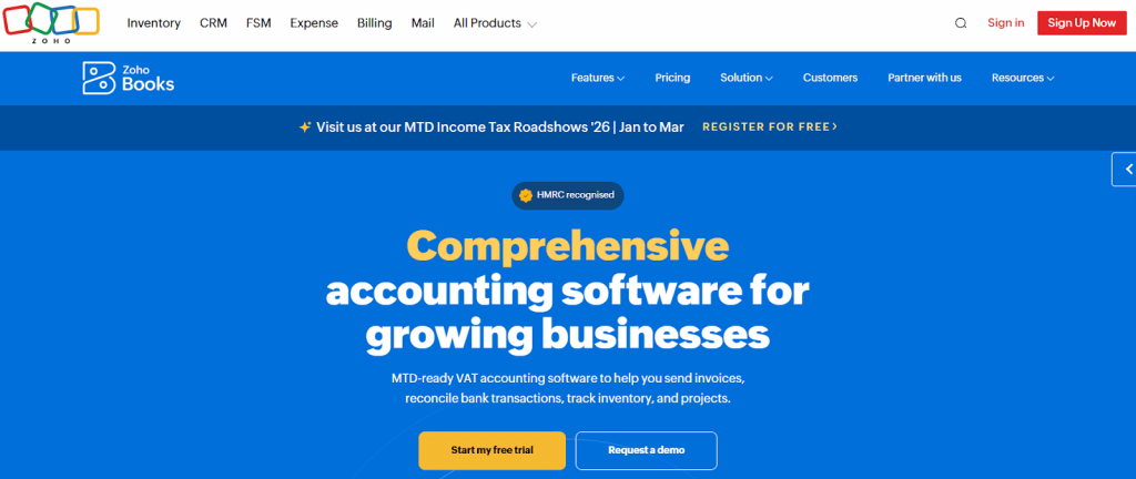 Zoho Books is a cloud accounting platform designed for small to mid-sized businesses that want an affordable, structured accounting system with broad functionality. It covers core accounting needs such as invoicing, expense tracking, bank reconciliation, inventory, and tax handling, and it fits naturally within the wider Zoho ecosystem for CRM, ecommerce, and operations.