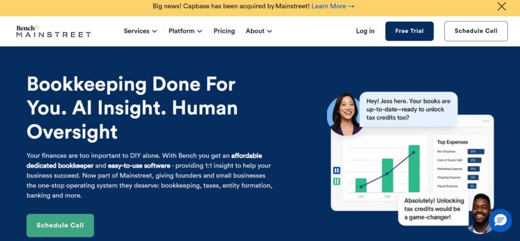 BenchGrow – $189/month (billed annually) or $199/month (billed monthly): For small businesses with under $10K in monthly expenses; includes dedicated bookkeeping experts, monthly books, year-end tax-ready financials, P&L, balance sheet, 1099 reporting, and scheduled communication touchpoints.