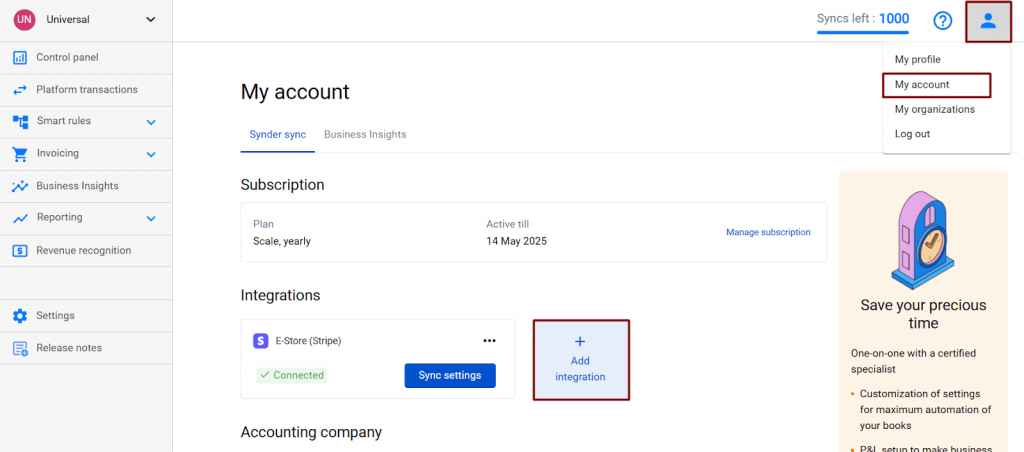 Pro tip: If you want deeper cost control, Synder Smart Rules let you route certain categories of fees to separate accounts for granular analysis.