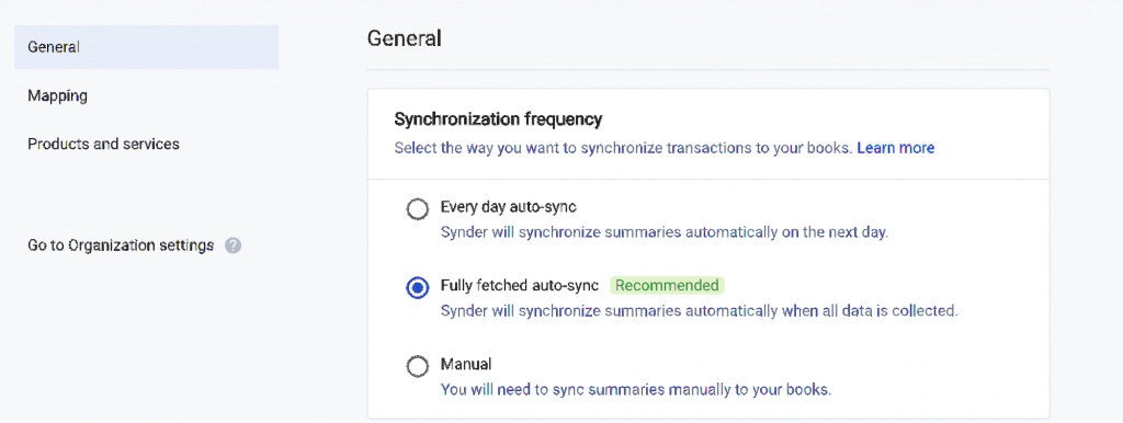 - (Optional) Enable automatic synchronization settings to have Synder post your Shopify transactions to NetSuite automatically.