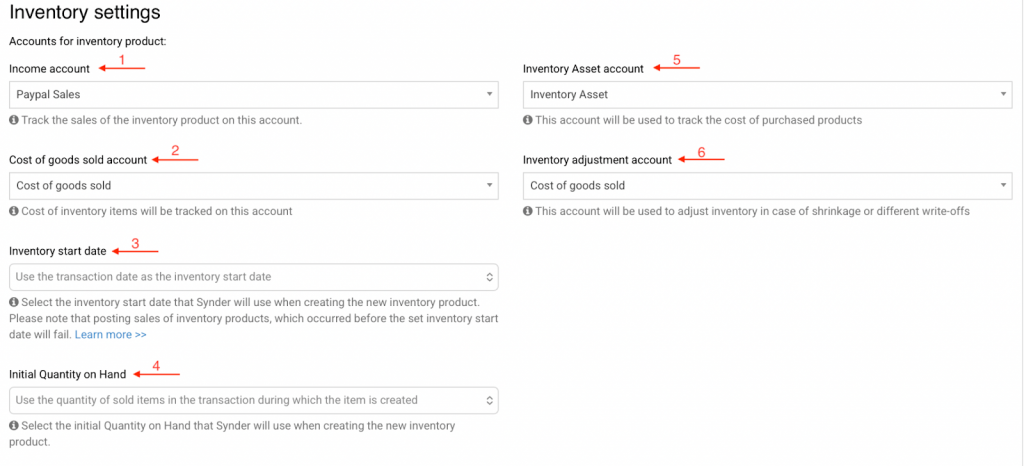 - Inventory Start Date – Select the start date Synder will use when creating the inventory product. Sales of inventory products that occurred before this date will not post.