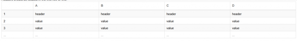 Headers should be located in the first row or line: