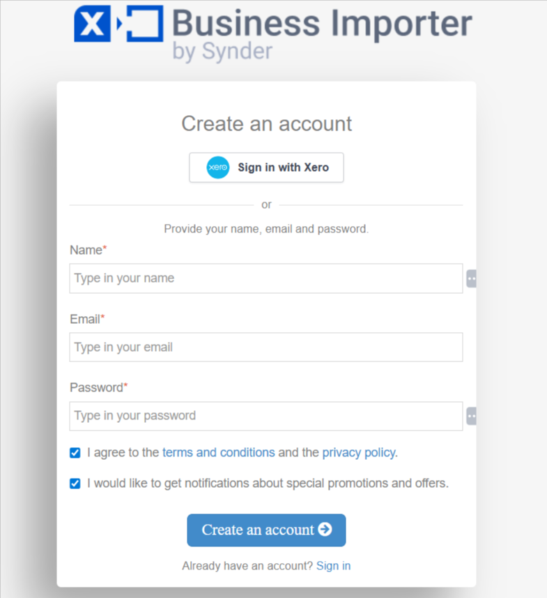 Before you can import data, you need to create a Business Importer account. Follow these steps to get started: