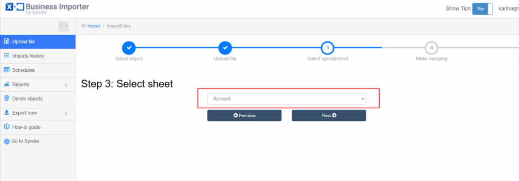 - If your file type is Excel and the file contains more than one spreadsheet, choose the preferred sheet to start import.