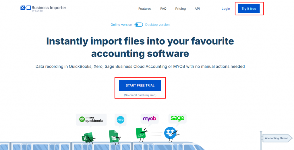 - Go to https://importer.synder.com/ and click “Try it Free.”
