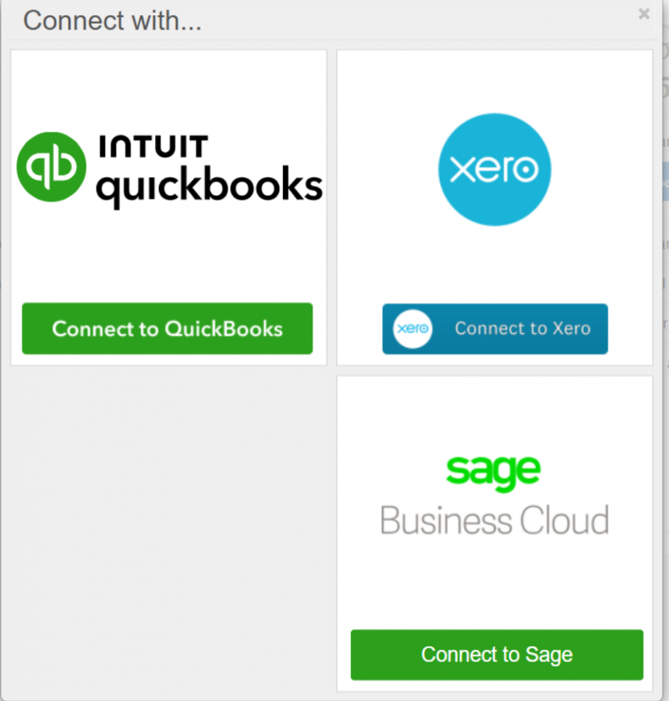After logging in, you can connect your accounting software in a few steps: