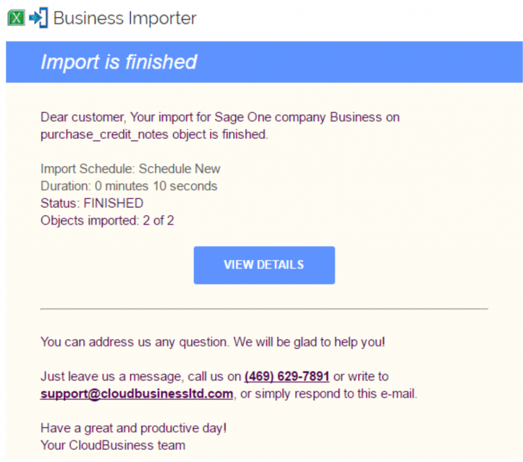 You will receive an email notification once the scheduled import is done.