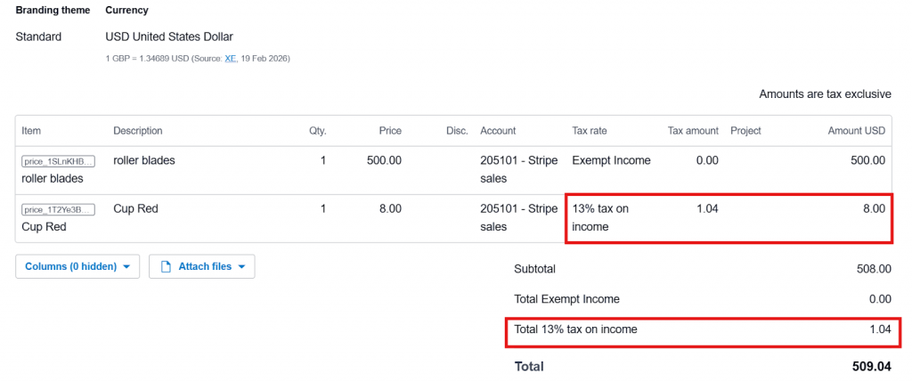 Use this configuration when you need to transfer tax details to Xero and apply tax codes.