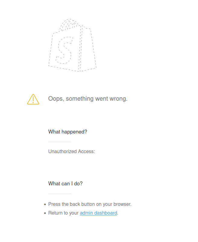- From the error page, click the link to return to the Shopify admin dashboard.