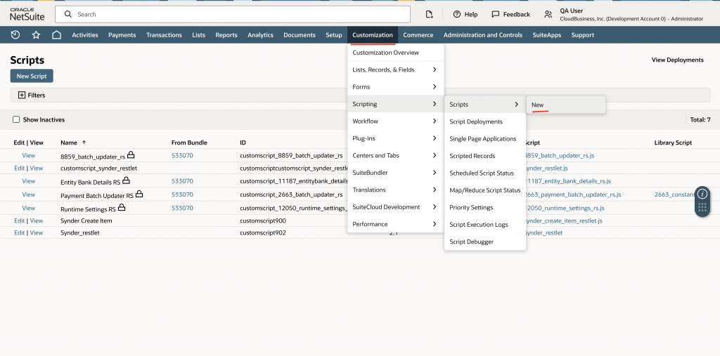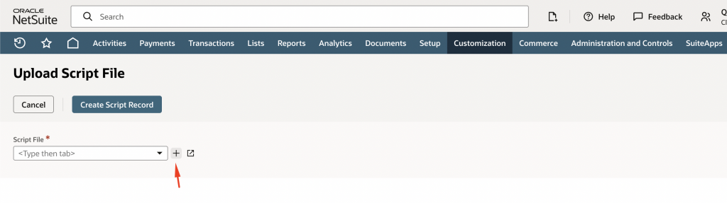 - In Oracle NetSuite, go to Customization → Scripting → New and create a new script record.