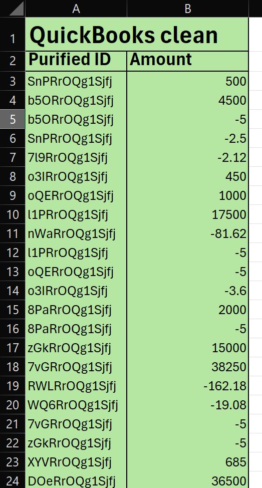 Copy values of Purified ID and Amountcolumns into a new sheet. This will be our Stripe clean report.