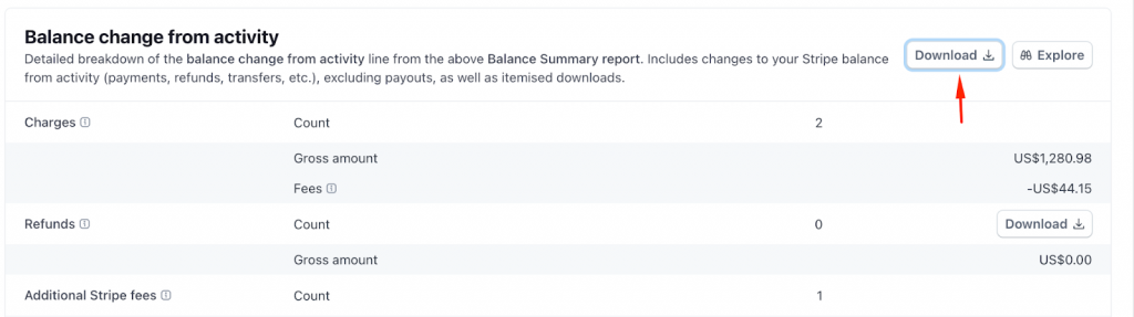 Here’s how you can download a Balance change from activity report inStripe: