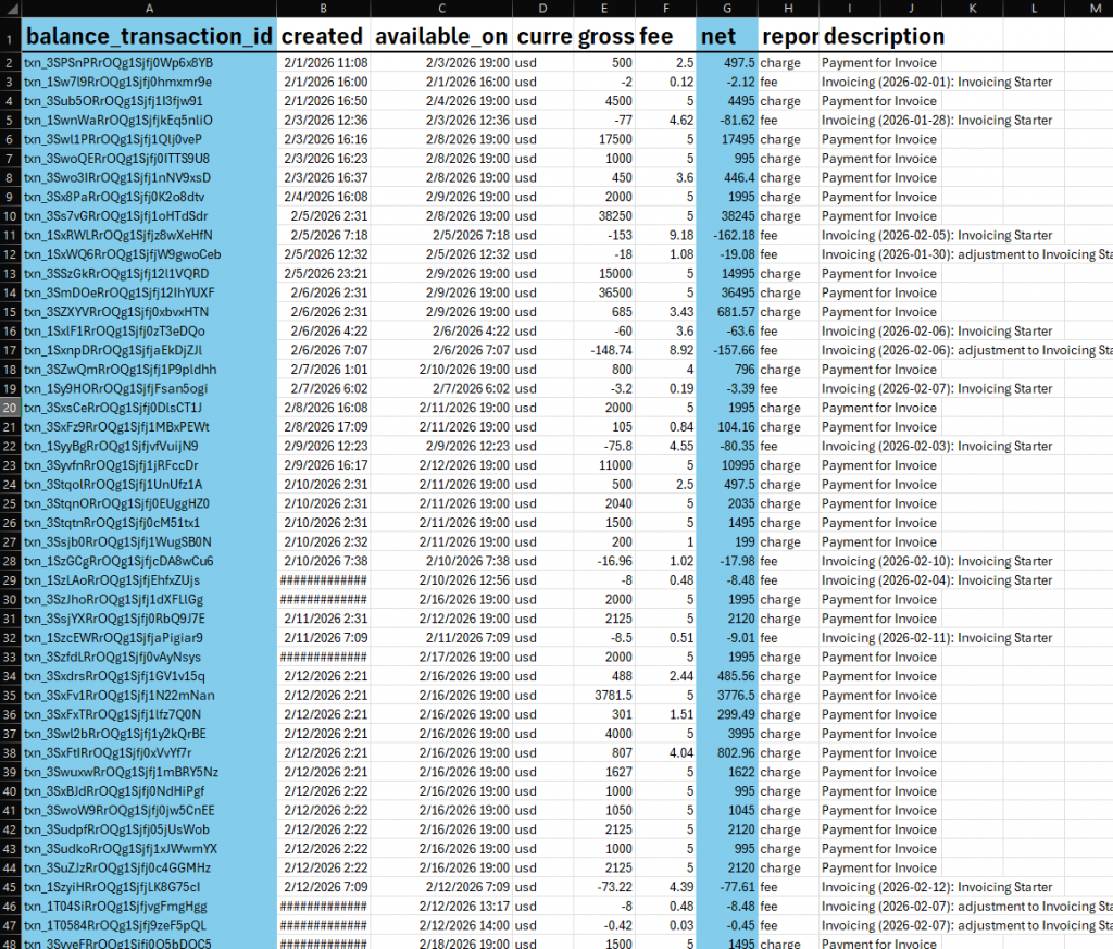 Stripe report includes a lot of transaction details that you don’t need for comparison.