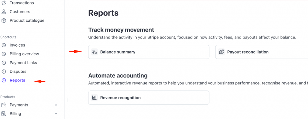 To reconcile your Stripe clearing account, we need to figure out the starting and ending balances in your Stripe account. Knowing your starting and ending balances gives you a clear reference point for matching your QuickBooks Online accounts. Stripe provides simple access to both balances on their reports page: