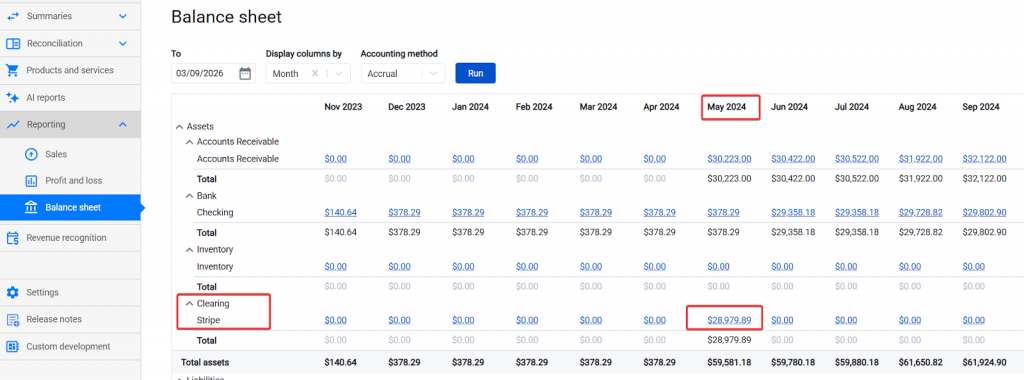 The amounts you will see in the Synder Balance sheet report will match your Stripe balance, meaning the reconciliation was successful.