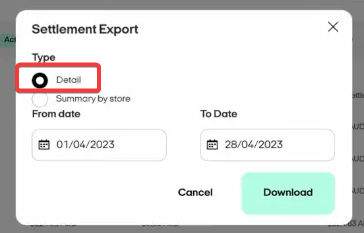 - Select a Detailed type and click Download (often as a CSV or Excel file).