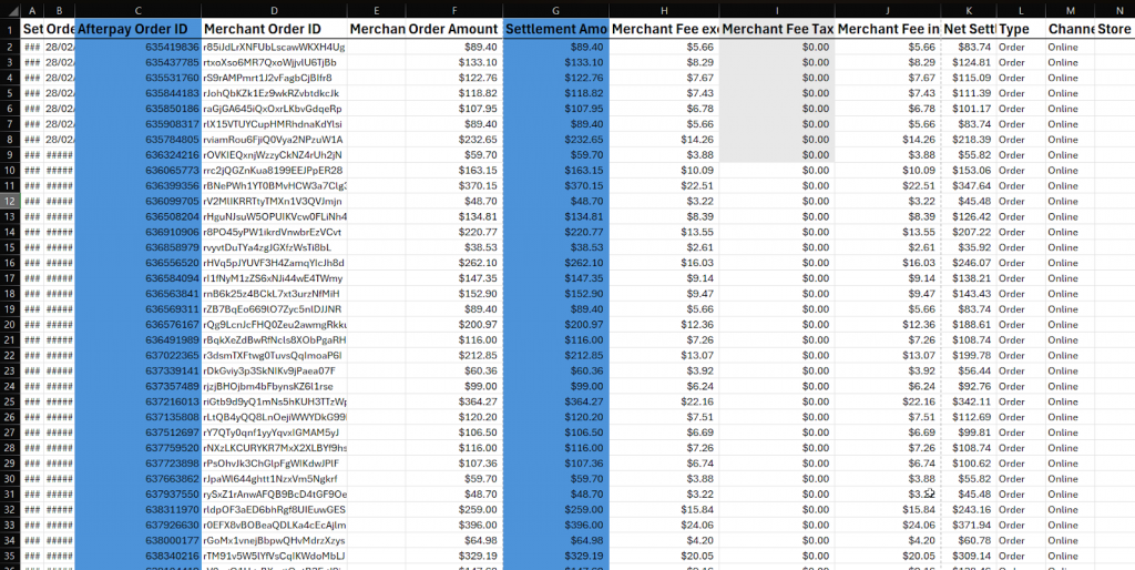 Afterpay report includes a lot of transaction details that you dont need for comparison.
