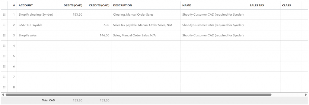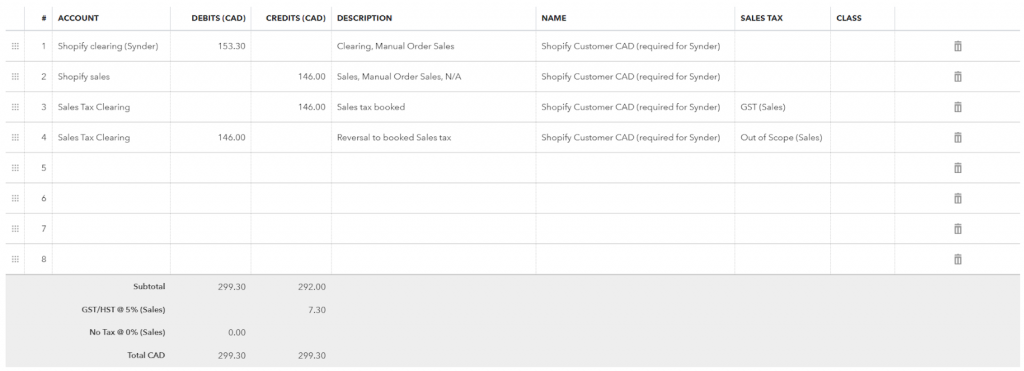 Non-US QuickBooks allows tax codes in journal entries. When tax tracking is enabled, Synder adjusts how entries are created in QuickBooks.