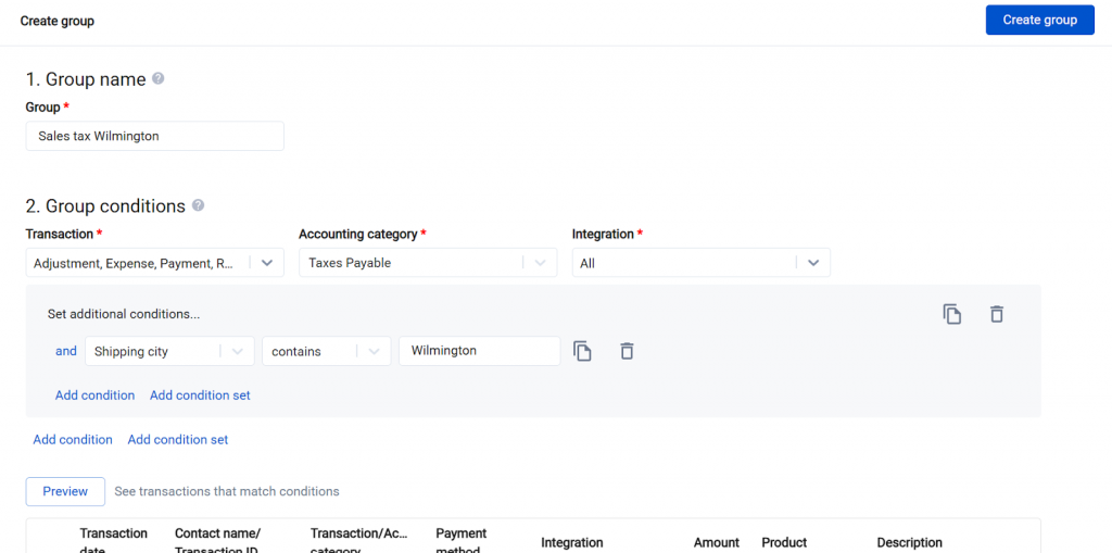 Note: Choose “Taxes Payable” under the accounting category to create the manual group specifically for tax mapping.