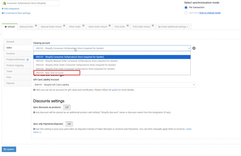 If we try to find that same Xero account in Synder, it won’t immediately show up in drop-down menus.