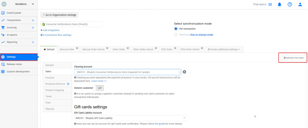How to refresh Xero’s cached data of the Synder Settings
