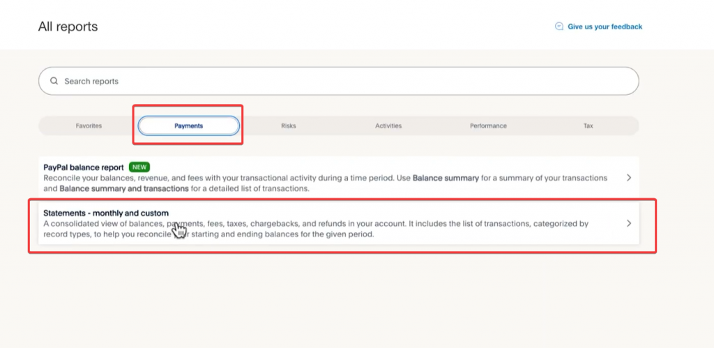 - Go to PayPal → Reports→ Payments.
