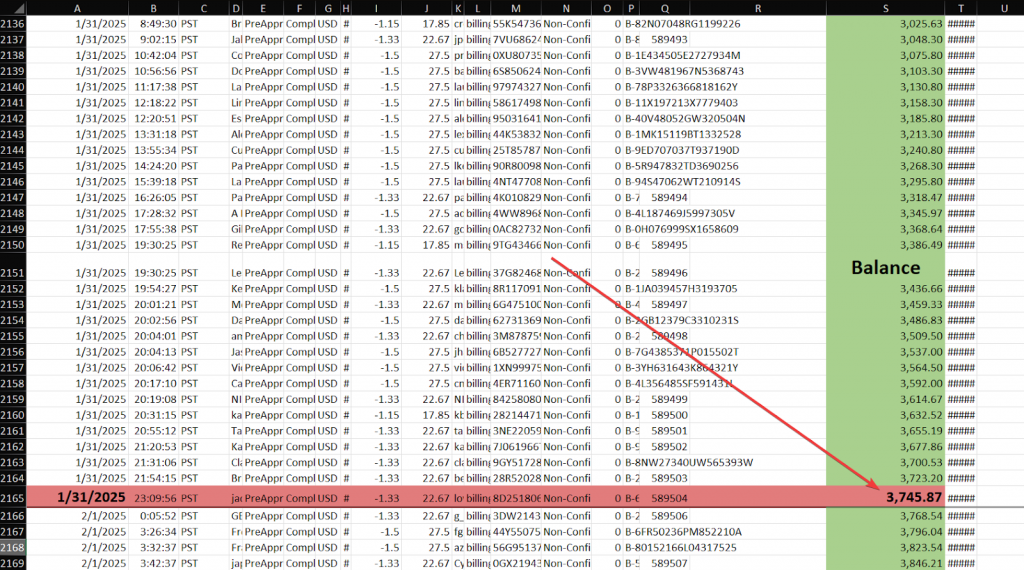 PayPal report includes a lot of transaction details that you don’t need for comparison.
