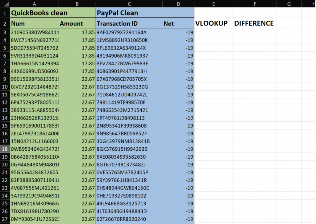 If after that your balances still don’t match, follow the steps below to identify discrepancies by comparing PayPal and QuickBooks Online data in Excel.