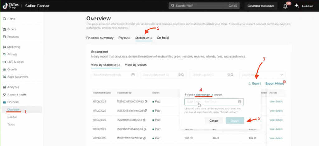 - Navigate to TikTok → Finances→Overview