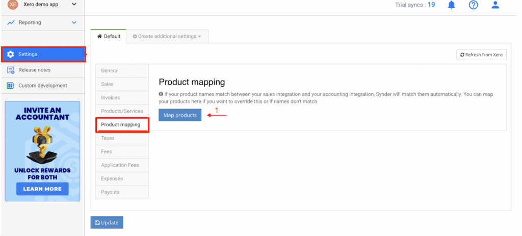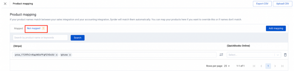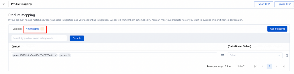 Sometimes product names differ between your payment platform and accounting system. In that case, you can map them in Synder. This ensures each transaction uses the correct product in your books.