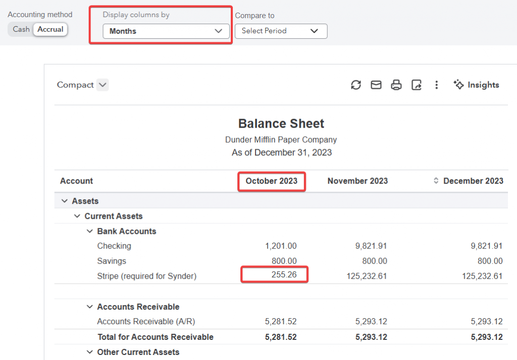 The amounts you will see in the QuickBooks Online Balance report will match your Stripe Ending balance amount, meaning the reconciliation was successful. Congratulations!