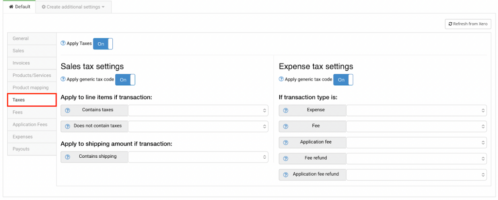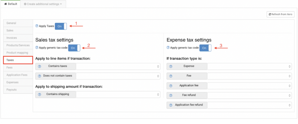- Apply Taxes – When ON, Synder automatically finds the matching tax code in Xero and applies it to the transaction for accurate tax calculation and reporting.