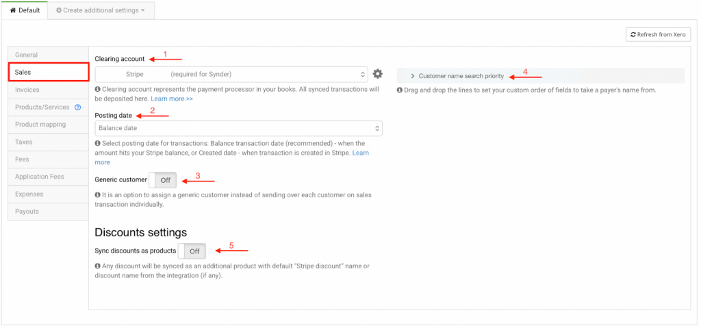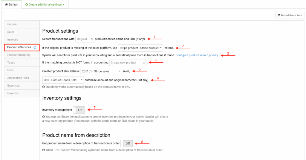 - Configure product search priority – Allows you to define whether Synder searches by SKU or product name first when matching products between Stripe and Xero. See our guide for more details Product Search Priority