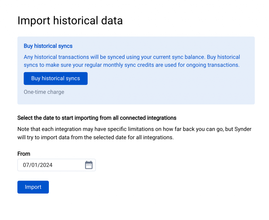 When connecting integrations, Synder asks you to select a “From” date for data import. This date must match across the E-commerce platform/s and all related payment gateways.