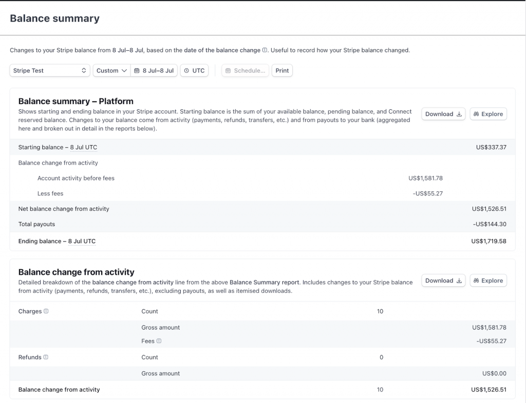 In instances where Stripe handles various payments from different platforms, refer to the Stripe balance summary report to compare and reconcile these figures.