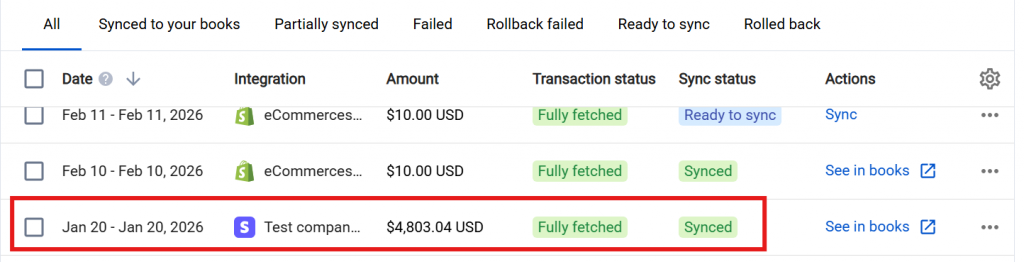 After completion, summaries will change the status to “Fully fetched”, indicating that all available data for that period has been aggregated. At this stage, the summaries are ready for review and synchronization.
