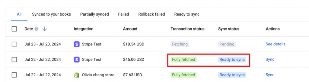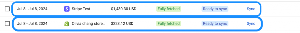 This usually means Stripe is processing both e-commerce and non-ecommerce transactions. Synder separates these into different summaries, so only the ecommerce-related Stripe activity is included in the Shopify summary. - Why do my summaries change from Ready to sync to Fetching status after I connect another payment gateway?