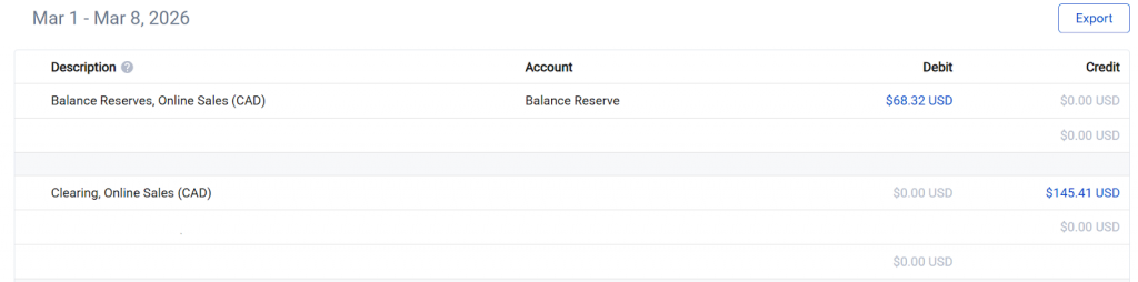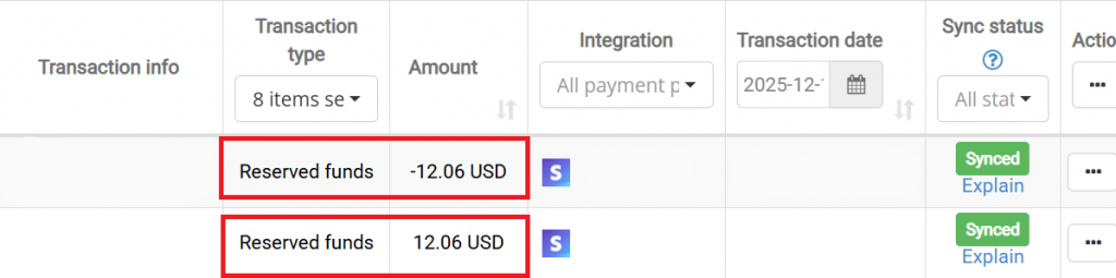 - Reserve hold (negative transaction) – Funds move from your clearing account → Balance Reserve account