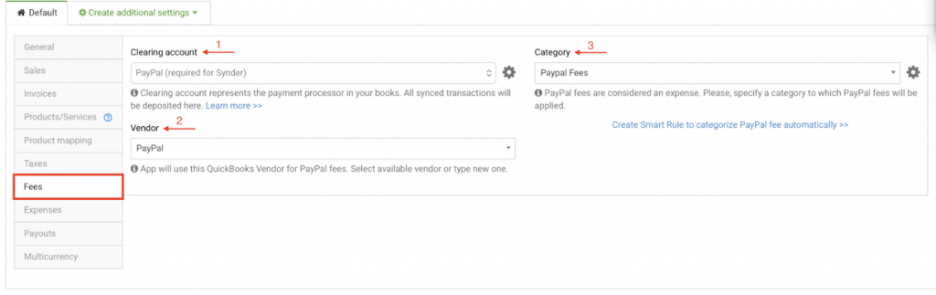 - Vendor – Select a QuickBooks Online vendor to assign PayPal fees. Choose an existing vendor or enter a custom name to group all PayPal fees under one vendor.