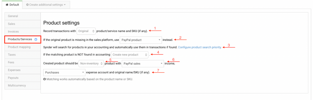 - Configure product search priority – Allows you to define whether Synder searches by SKU or product name first when matching products between PayPal and QuickBooks Online. See our guide for more details visit Product Search Priority.