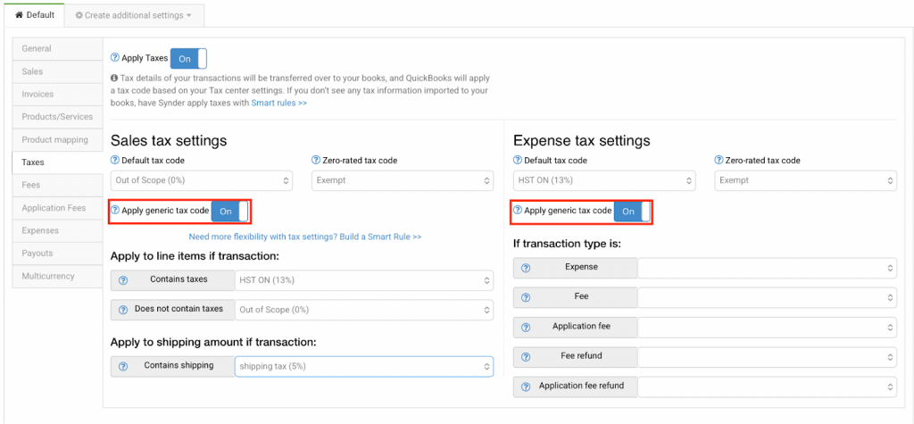 - Apply Taxes – Enable this setting to have Synder record taxes in the tax field for accurate reporting. Leave it disabled if you prefer taxes to be recorded as a line item.