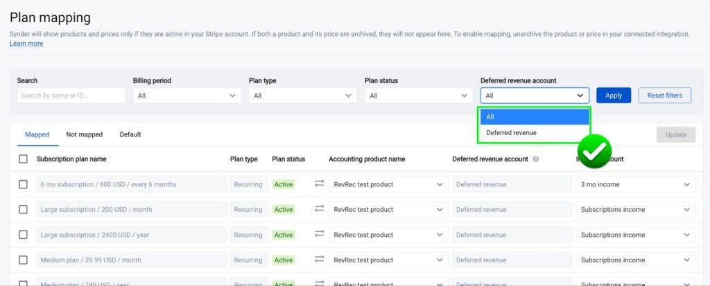 Before using the Deferred Revenue Reconciliation Report in Summary Sync mode, make sure your Synder and accounting setup meets the conditions below: