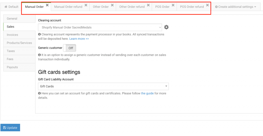 - To update their settings, use the Additional Settings tab specific to each transaction type.