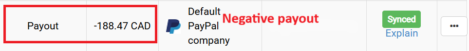 A negative payout occurs when money is transferred from PayPal to your bank account.