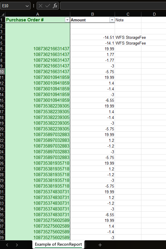 - Summary of findings (for example, “5 missing fulfillment fees totaling $47.50”)