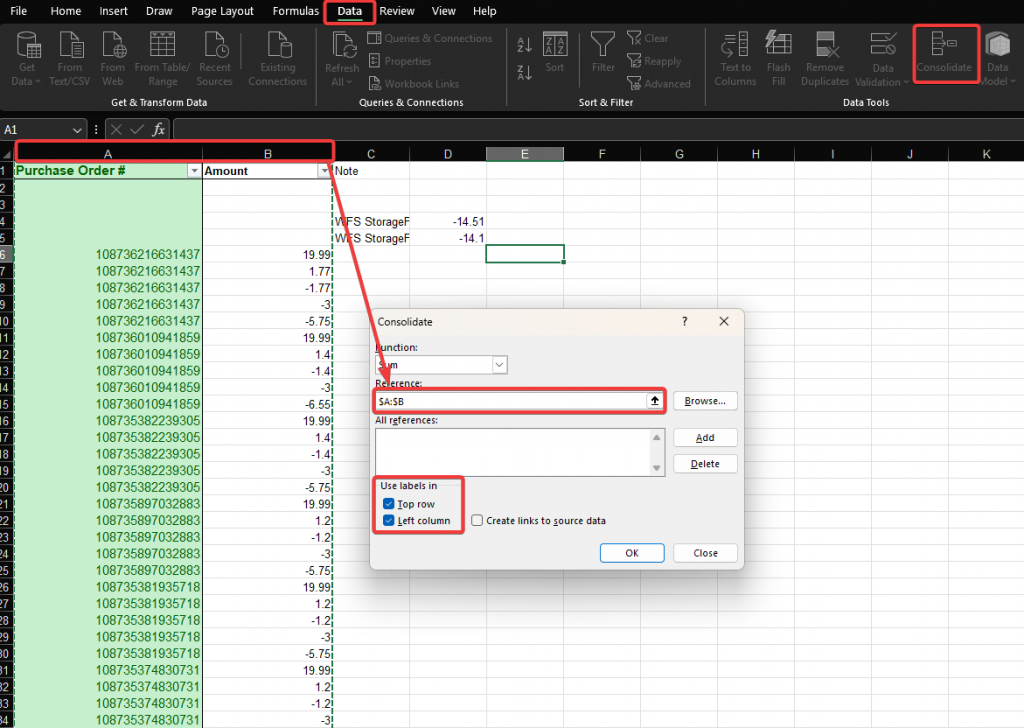 As a result, Excel will group multiple transactions with the same ID into one and sum their amounts. Here’s how it should look: