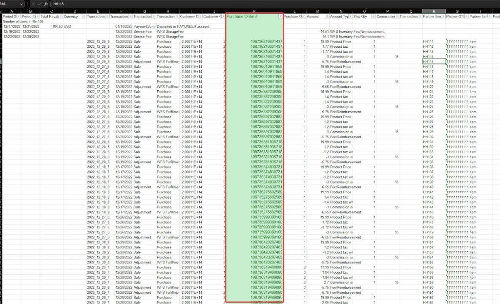 Walmart report includes a lot of transaction details that you don’t need for comparison.