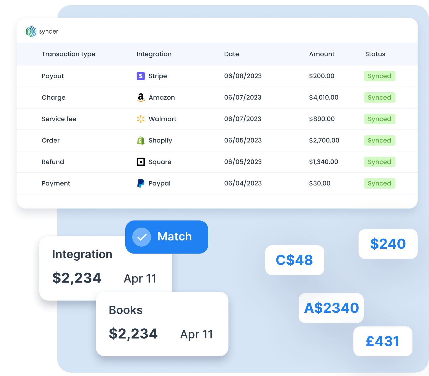 Thanks to Synder's Balance Reconciliation, transactions match payouts and validate against actual balances before posting. Accounts and bank records stay synced. Built-in duplicate detection eliminates errors, so your team gets clean records ready for a smooth month-end close.